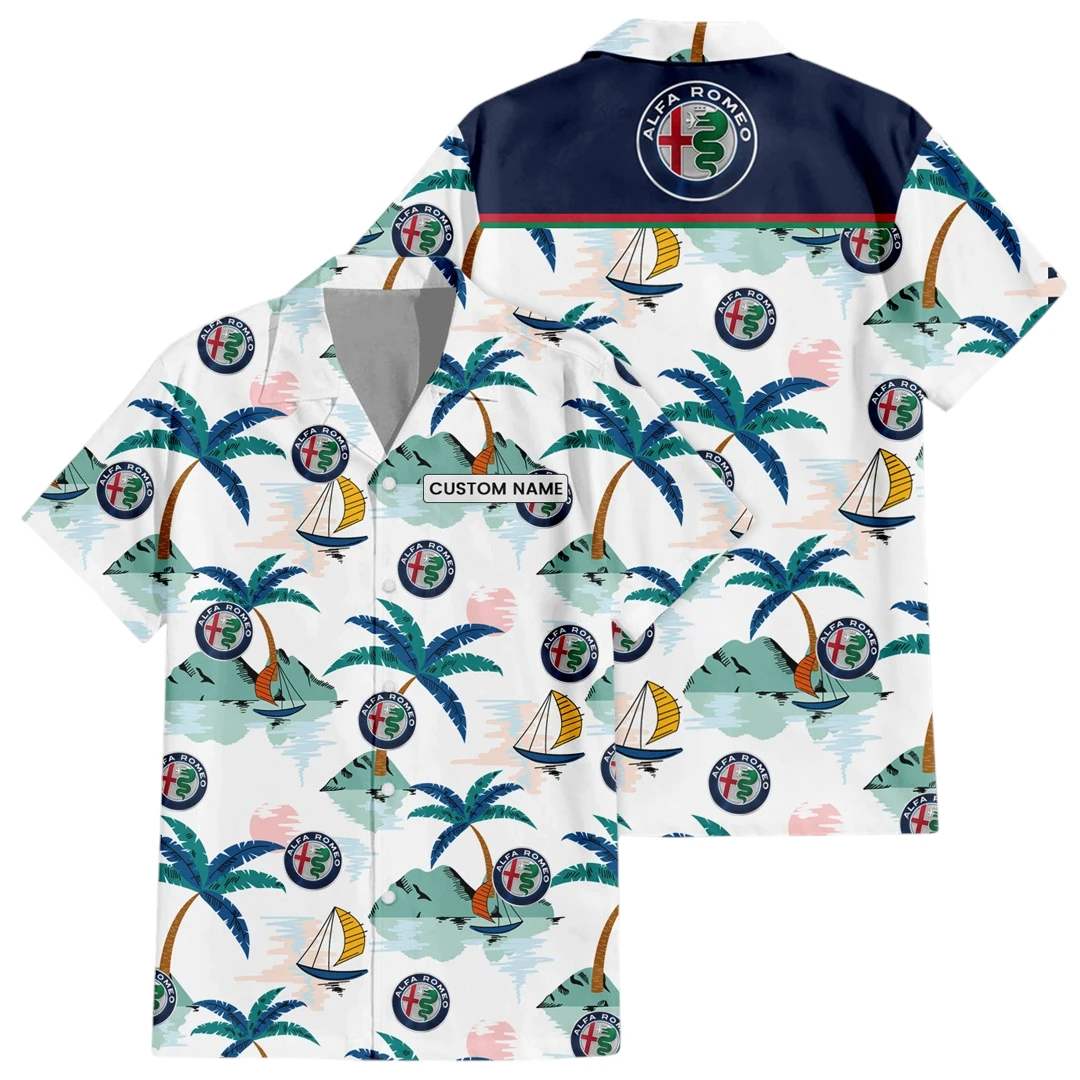 Alfa Romeo Exclusive Logo Button Up Hawaiian Shirt Tropical Landscape Pattern All-over Print, Custom Name HIDI170225Y7HWLS2ALR