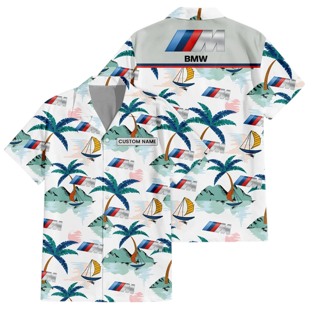 BMW Exclusive Logo Button Up Hawaiian Shirt Tropical Landscape Pattern All-over Print, Custom Name HIDI180225Y7HWLS2BMW