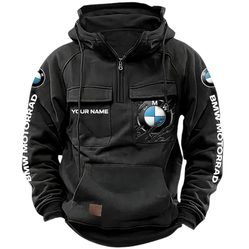 BMW Motorrad Quarter Zip Hoodie, Sports Hoodie Multi-Pockets, Custom Name HG170525Y41HJRCT1BMM