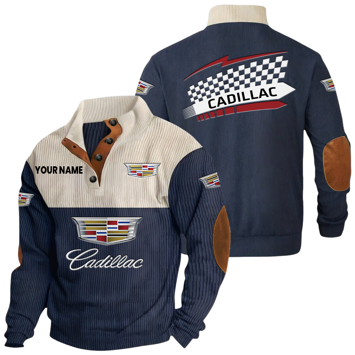 Cadillac Exclusive Logo Knitted Ribbed Corduroy Sweatshirt Stand Collar Custom Name