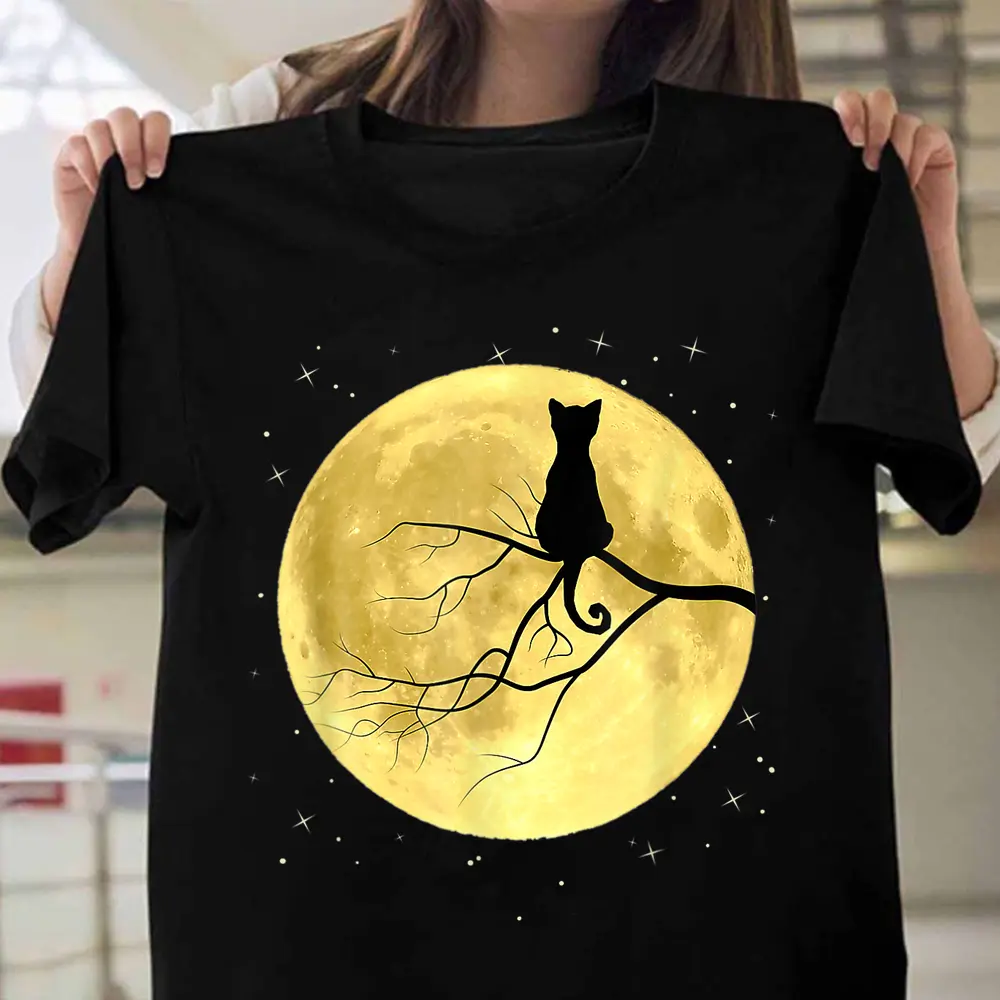 Cat On Moon Mystical Halloween T-Shirt