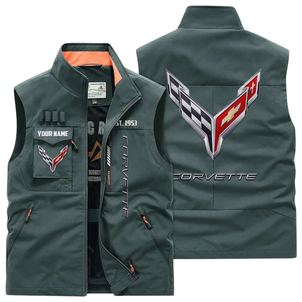 Chevrolet Corvette Multi Pocket Vest Sleeveless Men Outdoor Vest Lightweight Custom Name TN170425Y39MPVCT2COR