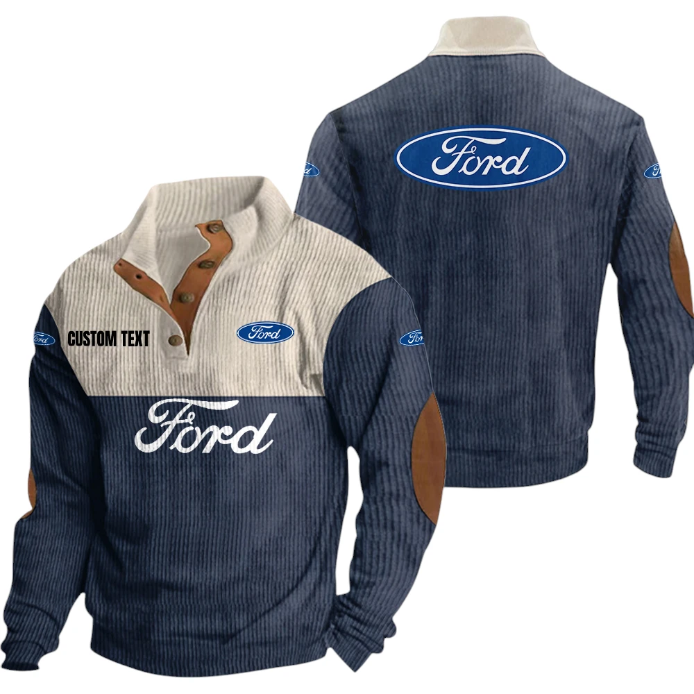 Ford Exclusive Logo Knitted Ribbed Corduroy Sweatshirt Mid Stretch Stand Collar Pullover Sweater, Custom Text HG140325Y32RCSCT1FOR