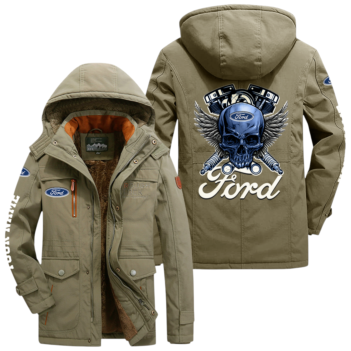 Ford Windproof Jacket Heavy Duty Fleece Lined Hooded Coat Custom Your Name