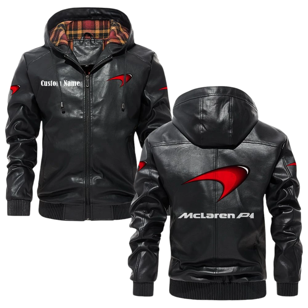 McLaren Exclusive Logo Hooded Jacket PU Leather x Durable Windproof Warm Soft Checkered Lining, Custom Name HG010425Y47JHLCT2MCL