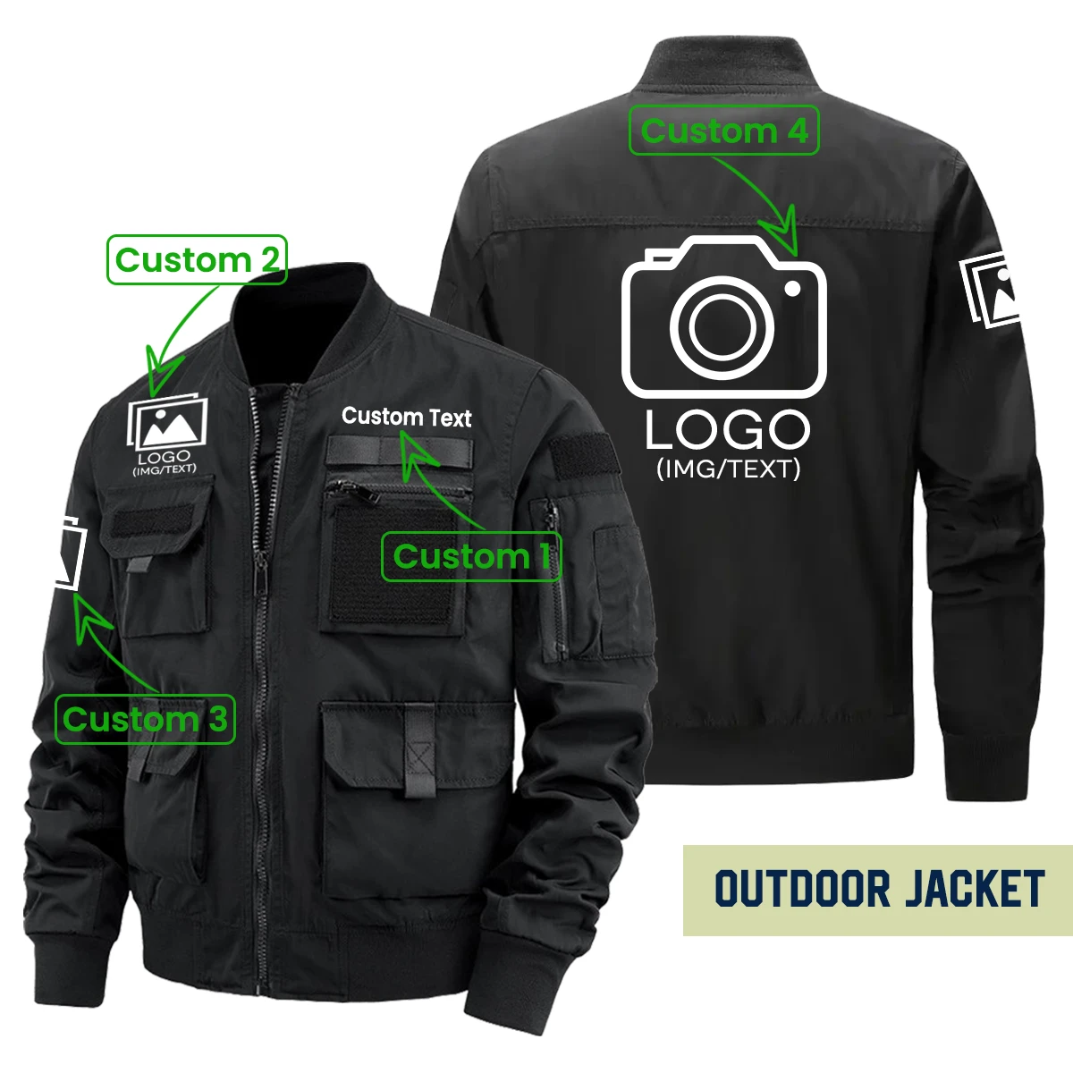 Mytownchannel Outdoor Jacket Baseball Collar Multiple Pocket Custom Name and Logo